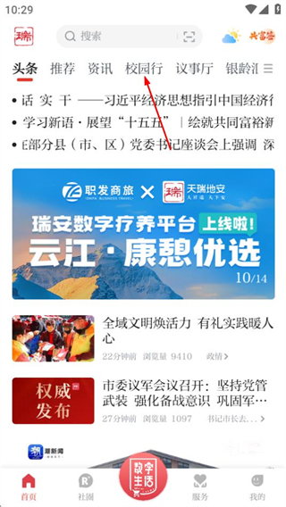 1、在天瑞地安首頁點(diǎn)擊校園行選項(xiàng),進(jìn)入校園行頁面。