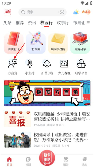 2、在校園行頁面點(diǎn)擊方言角選項(xiàng),進(jìn)入瑞安方言角頁面。
