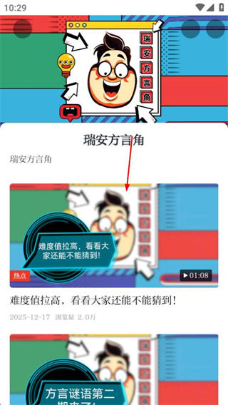 3、在瑞安方言角頁面點(diǎn)擊對應(yīng)內(nèi)容,查看方言相關(guān)視頻并學(xué)習(xí)。