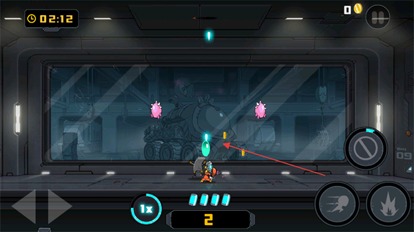 2、點擊右側(cè)技能按鈕太空艙圖標,釋放技能清理周圍敵人,獲取資源。