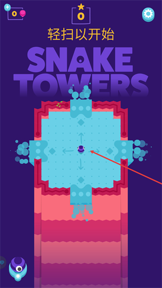 1、輕掃屏幕開始游戲,操控紫色蛇形角色在平臺移動(dòng),收集目標(biāo)物品。
