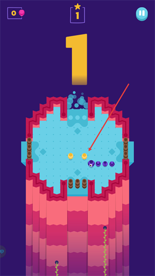 2、控制蛇形角色收集黃色道具,積累分?jǐn)?shù),當(dāng)前關(guān)卡進(jìn)度提升至1。