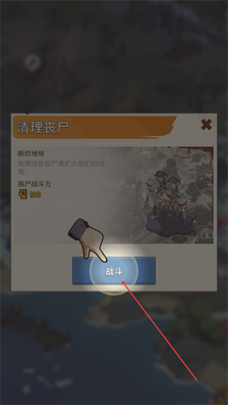 1、接取清理喪尸任務(wù),消耗100戰(zhàn)力點(diǎn)擊戰(zhàn)斗進(jìn)入關(guān)卡。