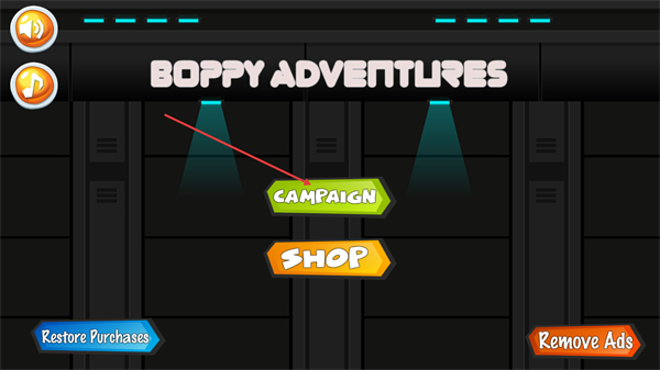 1、進(jìn)入波比冒險(xiǎn)記2游戲界面后,點(diǎn)擊CAMPAIGN開啟關(guān)卡挑戰(zhàn),SHOP用于解鎖道具還可操作其他按鈕完成設(shè)置后開始游戲。