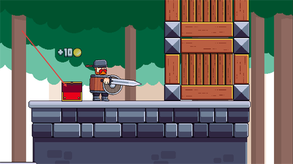 4、戰(zhàn)斗后移動角色靠近紅色寶箱,獲取10金幣獎勵,隨后前往木門所在位置,繼續(xù)推進游戲流程。