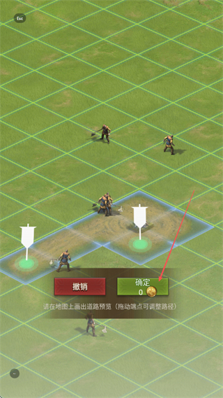 3、在地圖格子上規(guī)劃道路路線拖動端點可調(diào)整,確認后點擊確定完成道路建造。