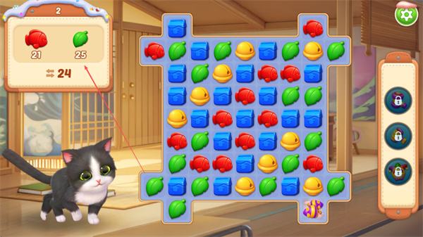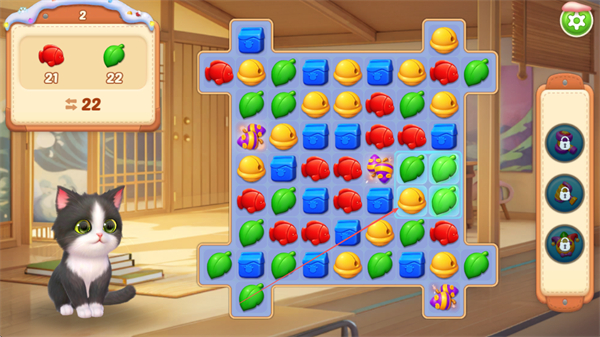 3、三消、建造、養(yǎng)成玩法深度聯(lián)動(dòng),三消闖關(guān)的目標(biāo)不再局限于通關(guān),更可獲取專屬資源反哺家園建造與貓咪養(yǎng)成,玩法閉環(huán)完整且充滿趣味性。