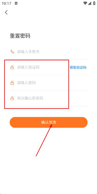 3、在重置密碼頁面填寫驗(yàn)證碼、新密碼及確認(rèn)密碼后,點(diǎn)擊確認(rèn)修改按鈕完成密碼重置。