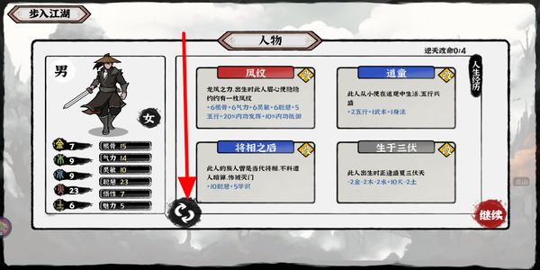 1、進(jìn)入游戲后在劇情選擇界面,挑選對(duì)應(yīng)的選項(xiàng)開(kāi)啟角色的出生劇情,不同選擇會(huì)影響后續(xù)的發(fā)展方向。