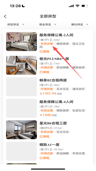 1、進(jìn)入首頁(yè)后,點(diǎn)擊精選房型旁的查看全部選項(xiàng),可進(jìn)入全部房型頁(yè)面。