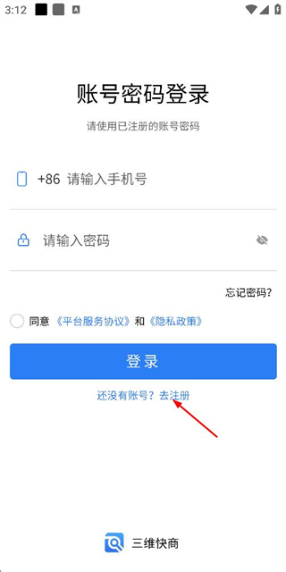 1、在登錄頁面點(diǎn)擊去注冊,進(jìn)入注冊賬號頁面。