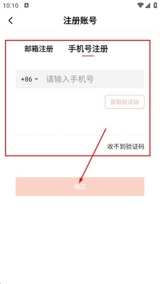 4、在頁面選擇手機號注冊,填寫手機號和驗證碼,點擊確定按鈕完成注冊。