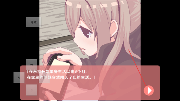 1、打開每天和家里蹲的妹妹一起生活游戲界面,點(diǎn)擊左側(cè)的游戲開始按鈕進(jìn)入場(chǎng)景劇情。