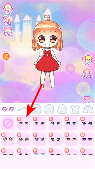 2、游戲中依照箭頭指引,選擇界面中的眼妝樣式,為角色更換眼部裝扮,這是角色裝扮的基礎(chǔ)操作之一。