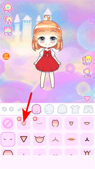 3、緊跟紅色箭頭指引,選擇界面中的唇妝樣式,為角色更換唇部裝扮,逐步完成角色的面部裝飾搭配。