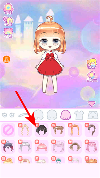 4、按箭頭指引選擇界面中的發(fā)型樣式,為角色更換發(fā)型裝扮,通過這類裝扮操作打造角色的個性化外觀。