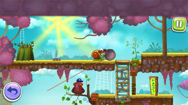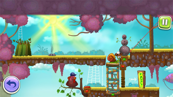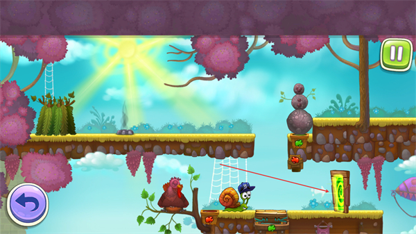 1、操控蝸牛移動,借助繩索拉動物品,推進(jìn)場景互動,開啟關(guān)卡流程。
