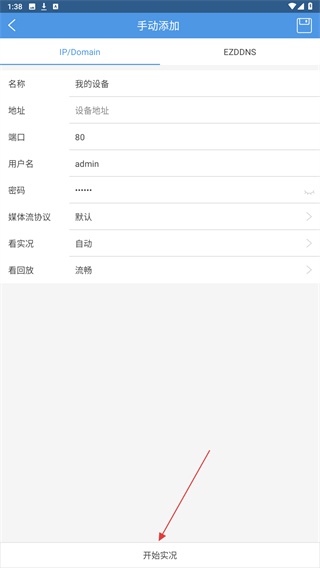 4、輸入設(shè)備地址后,點(diǎn)擊開始實(shí)況的按鈕即可成功。