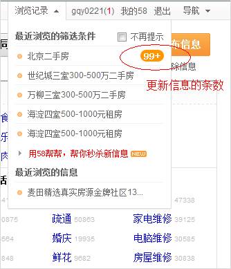 只要您登錄以后使用58同城搜索信息,當(dāng)您的篩選大于等于3個(gè)條件時(shí),我們就為您自動(dòng)保存這個(gè)信息為“訂閱條件”。每天您第一次登陸58同城時(shí),我們都會(huì)自動(dòng)幫您檢索您的“訂閱條件”是否有更新的內(nèi)容,如果有更新,我們會(huì)在網(wǎng)頁(yè)上方為您彈出提示;